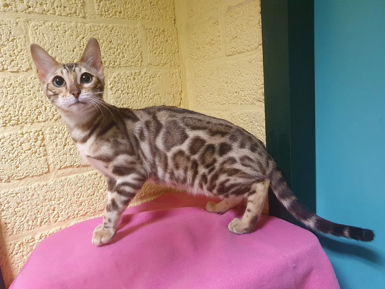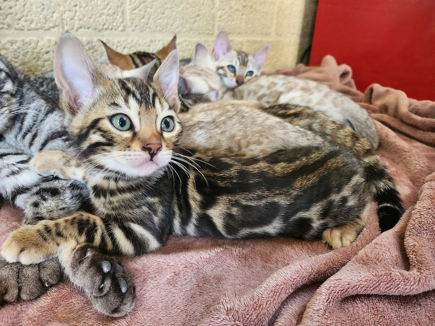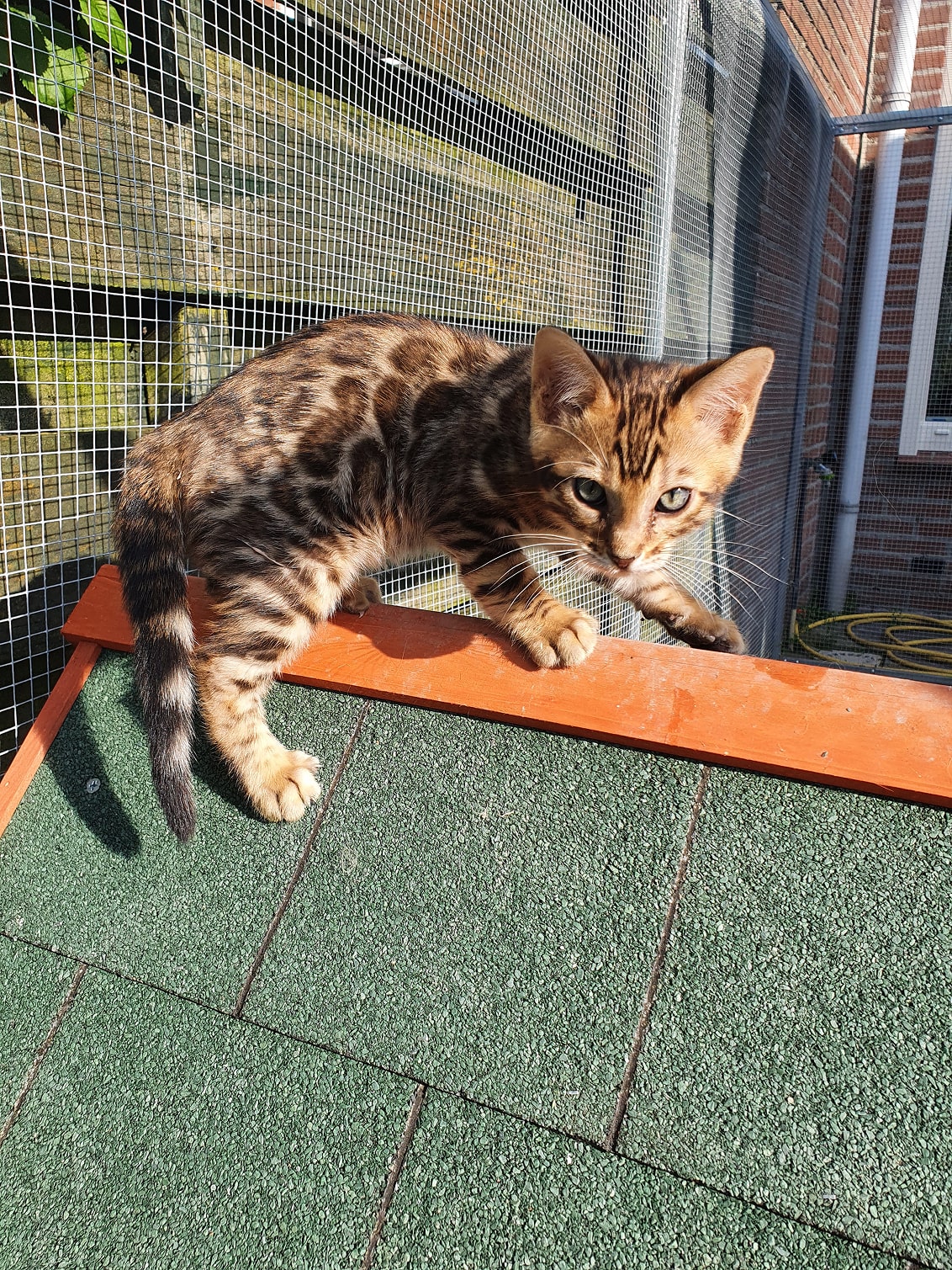 De Bengaal is een echte blikvanger — gespierd, actief en met een prachtige gevlekte vacht die doet denken aan een mini‑luipaard. Onze Bengalen zijn niet alleen mooi, maar ook sociaal en slim. Ze houden van klimmen, spelen en aandacht krijgen van hun mensen.
