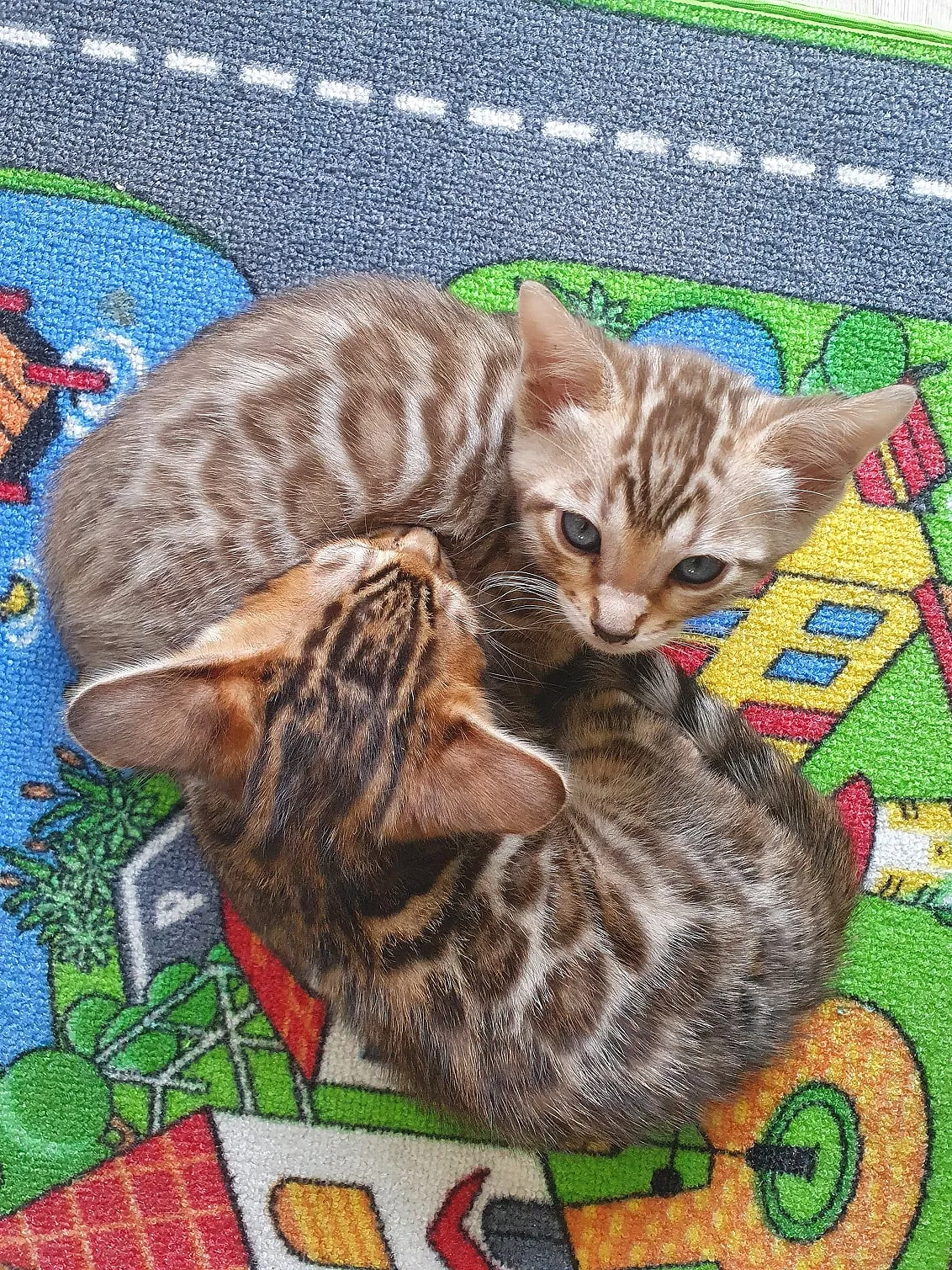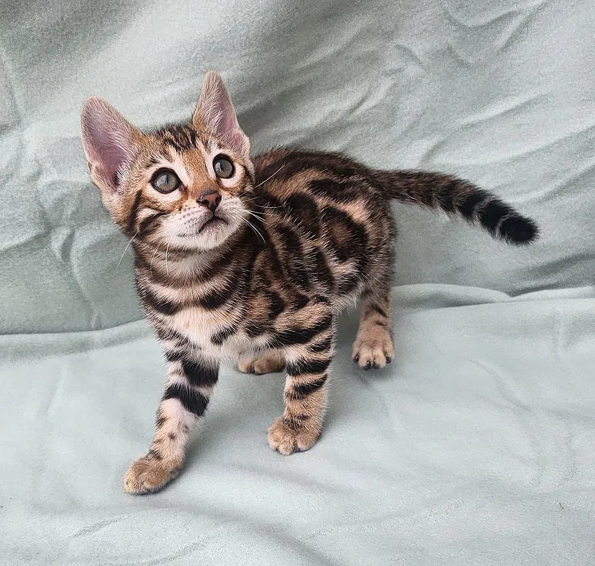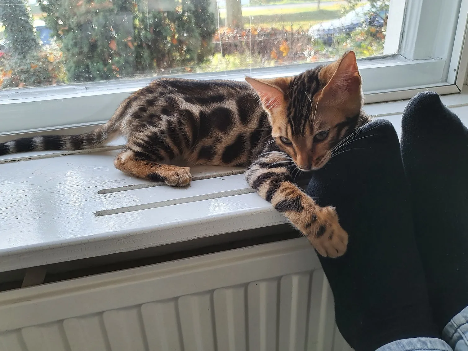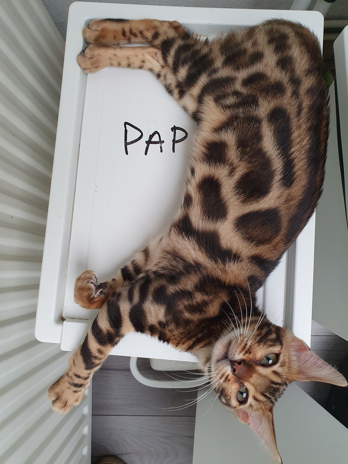 De Bengaal is een echte blikvanger — gespierd, actief en met een prachtige gevlekte vacht die doet denken aan een mini‑luipaard. Onze Bengalen zijn niet alleen mooi, maar ook sociaal en slim. Ze houden van klimmen, spelen en aandacht krijgen van hun mensen.