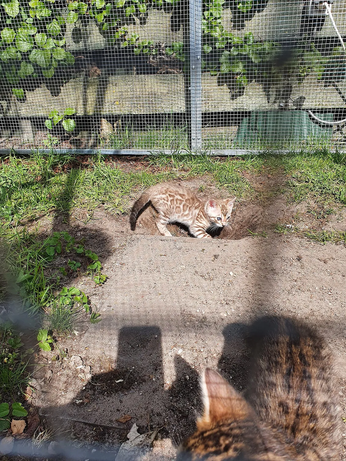 De Cattery bevindt zich in het buitengebied van het dorp Echt. De Cattery beschikt over meerdere zeer grote volieres, elk met haar eigen binnenruimte. de ene is 200 m2, de andere 300 m2. Ook hebben we 3 overdekte kleinere kooien, van elk 50 m2. Daarnaast hebben we nog een aantal kleinere binnenruimtes ter beschikking, welke worden gebruikt voor kortdurende verblijven, dekkamer of ziekenboeg. De katten hebben hun eigen verwarmde ligplekken, maar houden (zelfs in de winter) het meeste van lekker buiten zijn! De Cattery is recent gekeurd door een externe dierenarts en voldoet aan de richtlijnen voor TICA Outstanding Cattery. Dit is het hoogst haalbare Amerikaanse wereldwijd erkende certificaat voor een kattenfokkerij. Uiteraard is de Cattery ook in het bezit van de Nederlandse wettelijk verplichte certificaten zoals Bewijs van Vakbekwaamheid, een UBN nummer van de RVO en is tegenwoordig lid van TICA, de grootste en meest professionele kattenfokvereniging van de wereld.