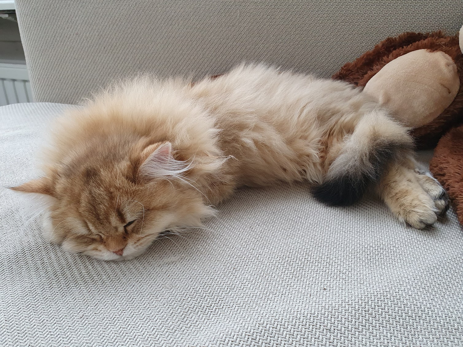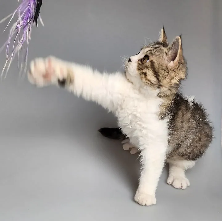 De Selkirk Rex is een echte knuffelkat met een bijzondere, krullende vacht. Ze zijn zachtaardig, nieuwsgierig en vaak heerlijk relaxt. Je herkent ze meteen aan hun volle krullen en lieve uitstraling.