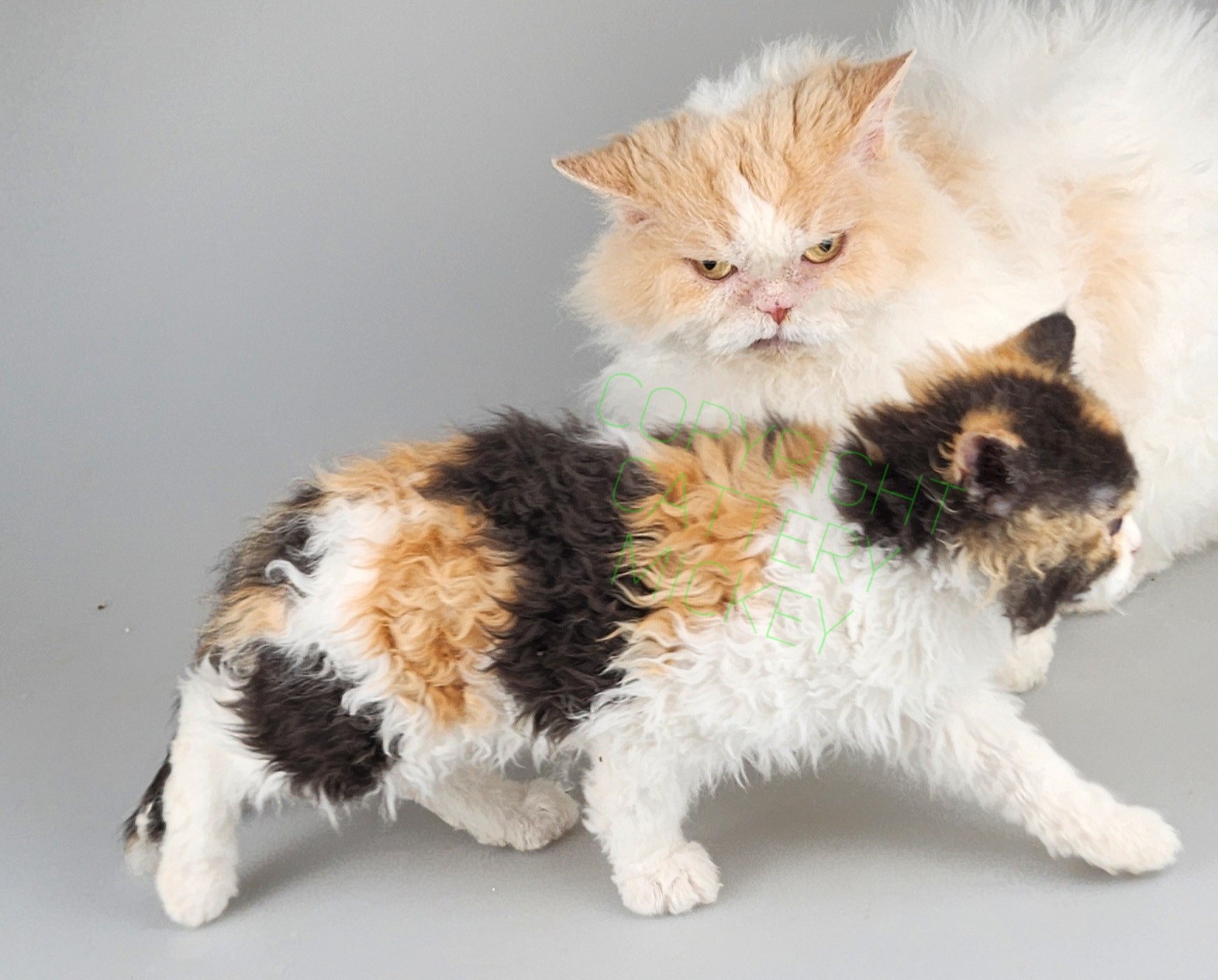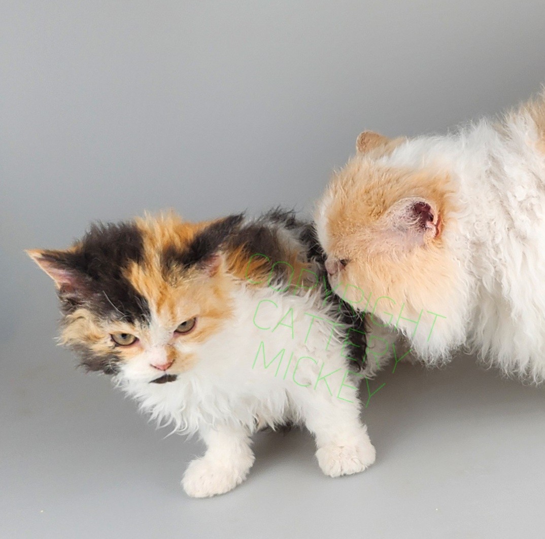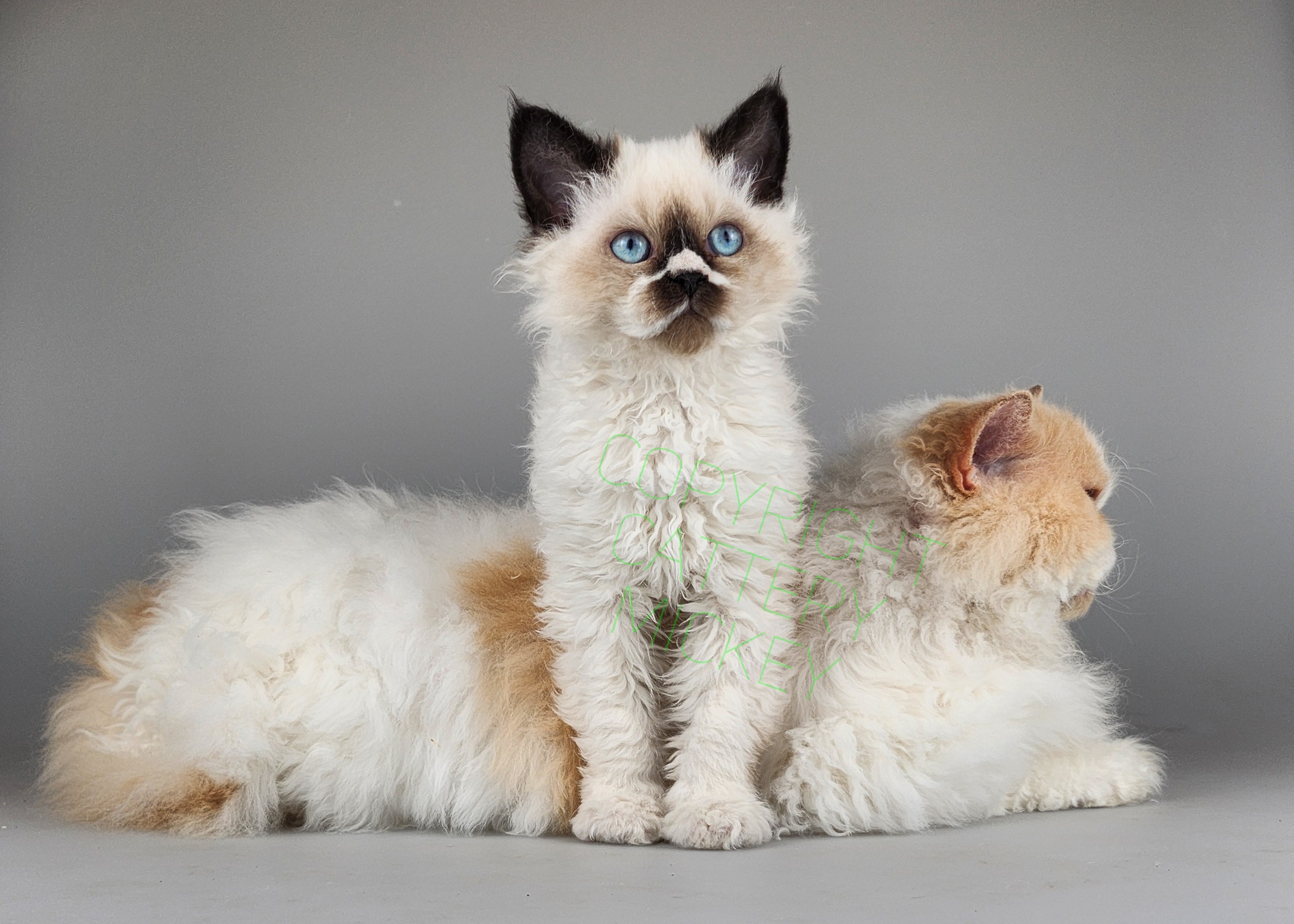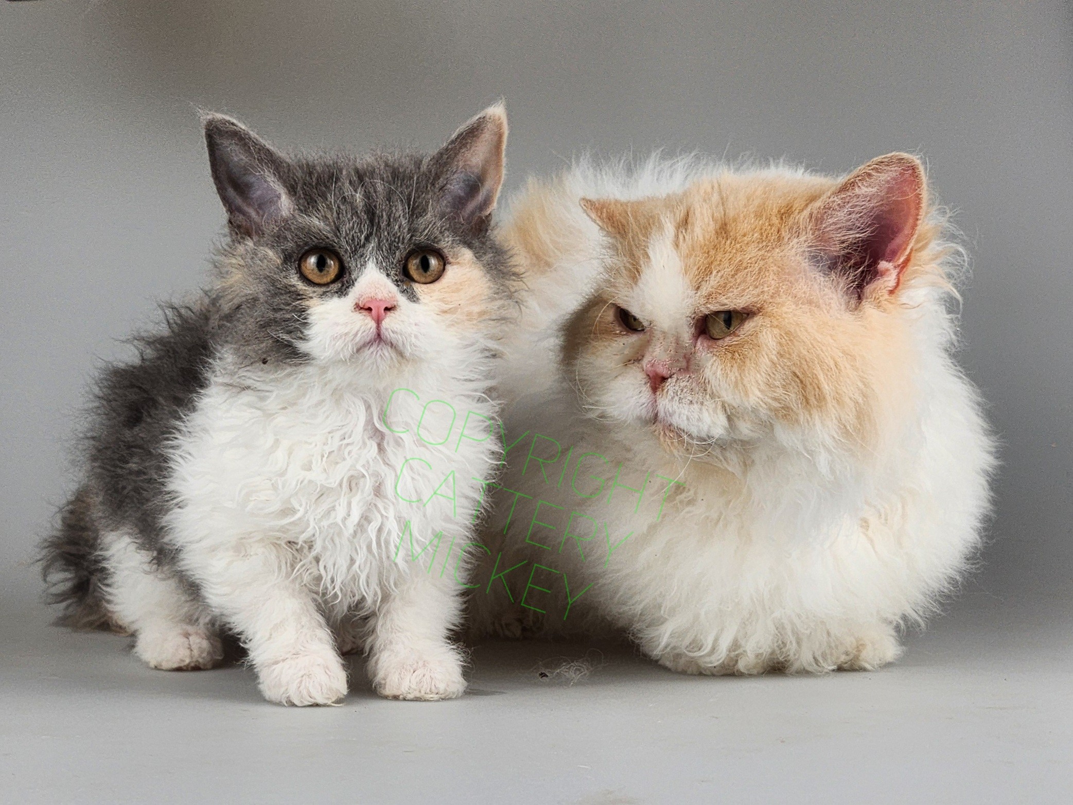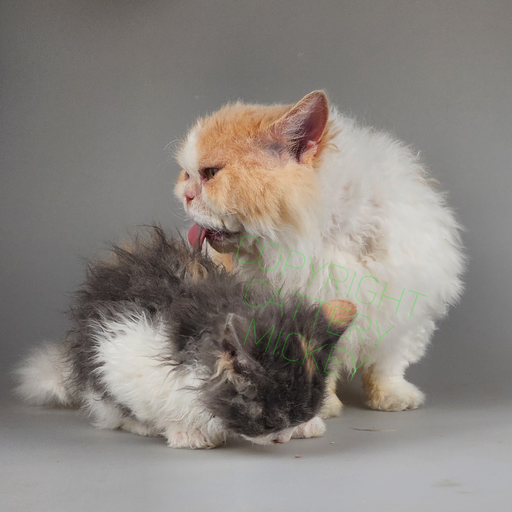 Maak kennis met onze wereldkampioen Punk – onze stoere dekkater met zijn zachte karakter. Punk is een langharige Selkirk Rex in de kleur bicolor crème met wit. Zijn krullen zijn onweerstaanbaar en hij draagt veel bijzondere genen.